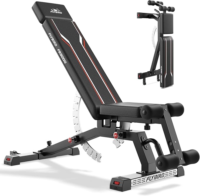 - 1200 LBS Weight Capacity: Flybird weight bench is made of commercial grade steel for a robust construction; 21'' extended base provides a wider, more stable support area; Combines high quality, sturdiness and durability for a reliable workout experience