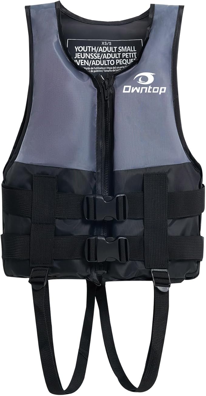 Owntop Kids and Adult Swim Jackets 50 to 125 lbs Dual Buckles, Zipper and Crotch Strap Ski Vest Lightweight PFD Perfect for Kayaking, Fishing, Paddle Board