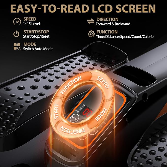 - EASY OPERATION LCD SCREEN & REMOTE CONTROL - Start with a single button press; easily switch modes using the LCD screen or remote control; LCD screen displays real-time data on time, distance, speed, calories burned, and step count. Comes with remote control allows you to change mode without bending over, reducing strain on your back (batteries not included).