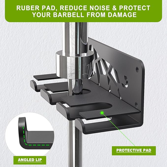 - 【Protective Features】All hooks are properly spaced to avoid overlapping, protecting your equipment and rack from scratches. Rubber protective pads have been added to the hooks to reduce noise and protect your barbell from scratches