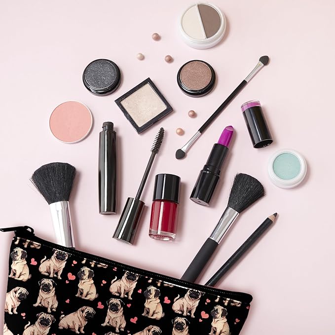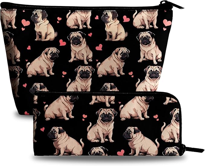 Pug Dog Makeup Bag for Purse - 2Pcs Cosmetic Bags Travel Toiletry Bags for Women Makeup Organizer Zipper Pouch