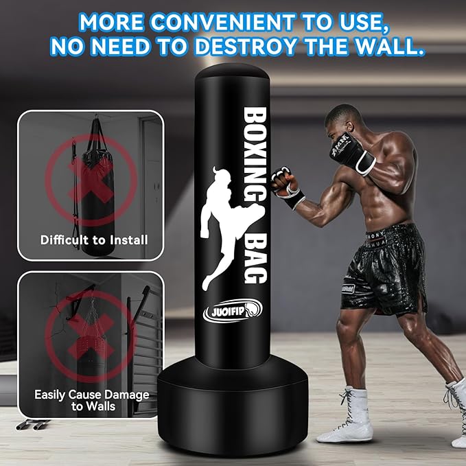 - Freestanding Punching Bag for Adults: The mma punching bag is 69'' tall, perfect for teens and adults. Thickened PVC material make the boxing punching bag more durable. It's a good choice for you to train with boxing equipment at-home.