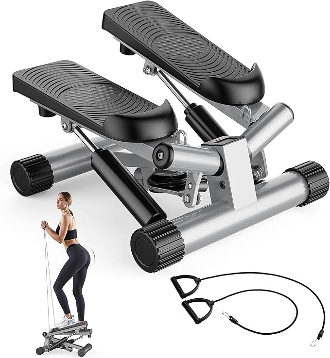 Sweetcrispy Mini Stair Steppers with Resistance Bands for Exercise at Home, Portable Exercise Twist Stepper Machine for Full Body Workout, 265LBS Capacity