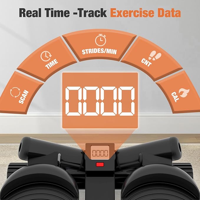 - Heavy-Duty Construction & Real-Time Tracking: Built with thickened commercial-grade steel and precision bearings, it supports up to 220 lbs. The LED monitor tracks your step count, exercise time, calories burned, STRIDES/MIN, allowing you to monitor your progress and reach your fitness goals efficiently.