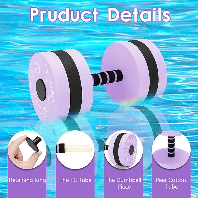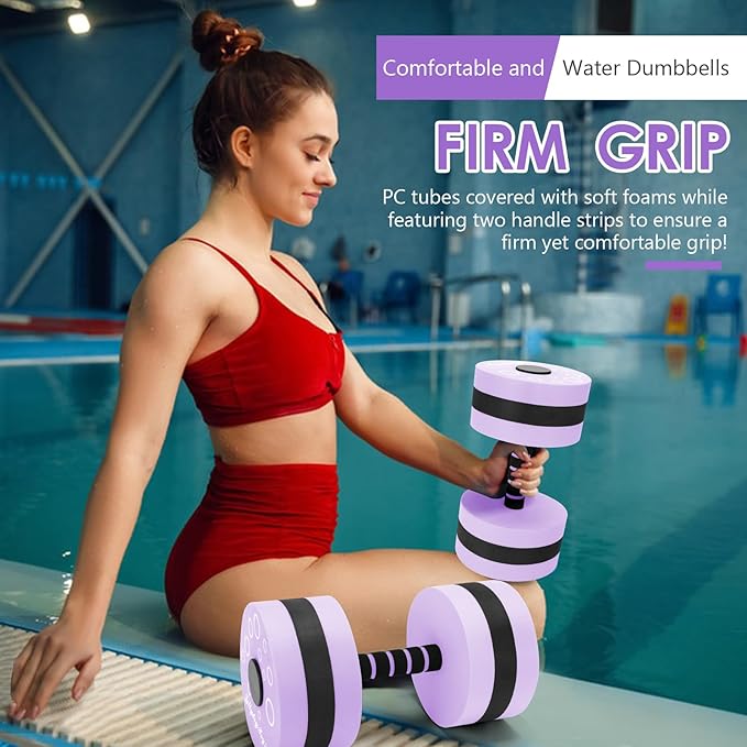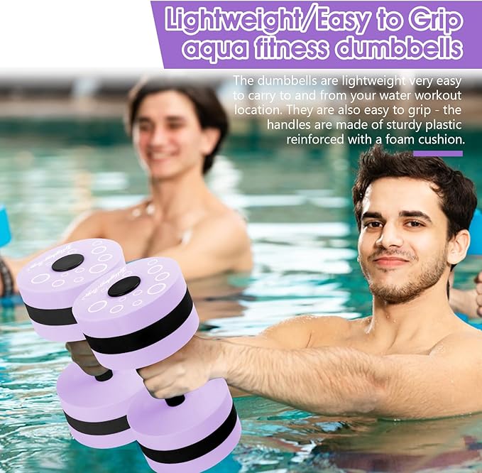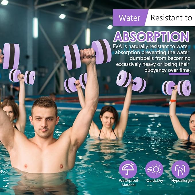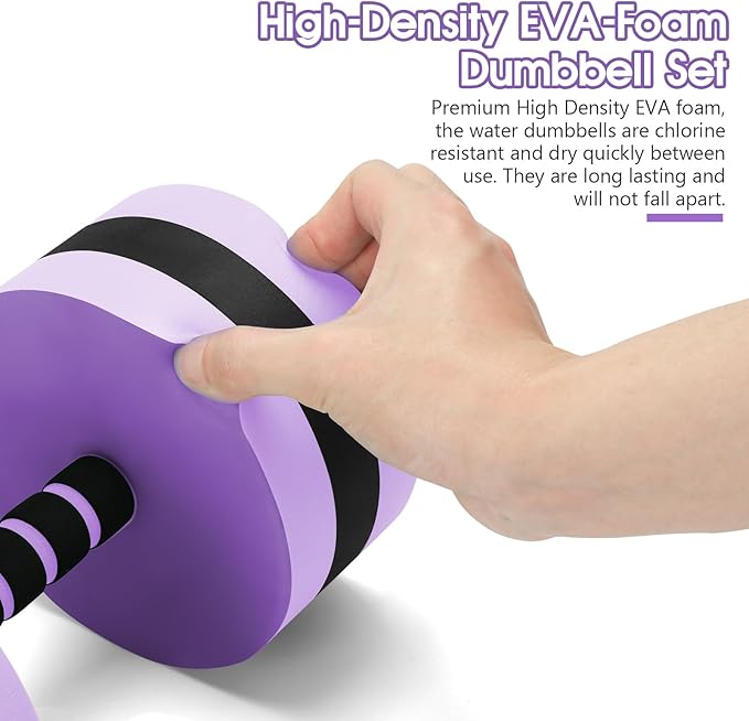 - High-Density EVA-Foam Dumbbell Set-Made of premium High Density EVA foam, the water dumbbells are chlorine resistant and dry quickly between use. They are long lasting and will not fall apart.
