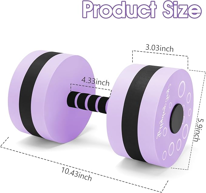 - Lightweight/Easy to Grip Water Ring Aqua Fitness Dumbbells - The dumbbells arecustom designed with water rings and our logo, makes it looks more special and charming, lightweight very easy to carry to and from your water workout location. They are also easy to grip - the handles are made of sturdy plastic reinforced with a foam cushion. Dimensions:10.8"L x 5.8"W.