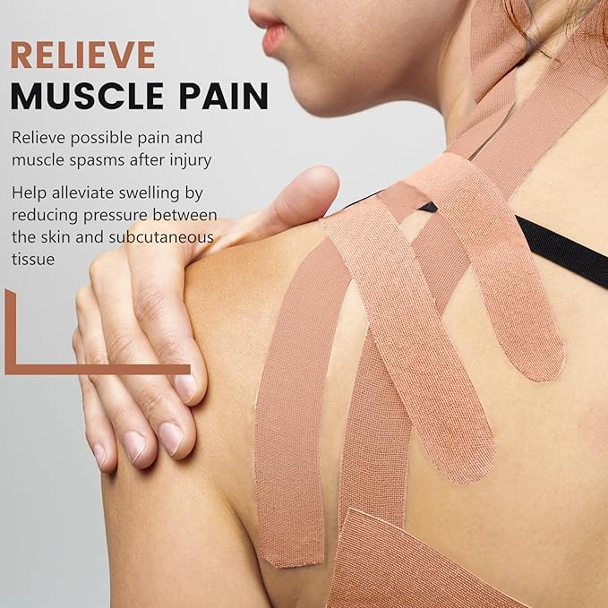 - 【Skin friendly】Our athletic tapes are latex-free formula minimizes discomfort for sensitive skin. You can use these muscle tapes on your neck, shoulders, waist, legs, and ankles to support muscle movement during activity