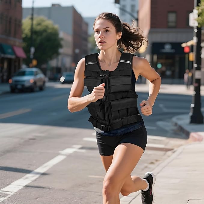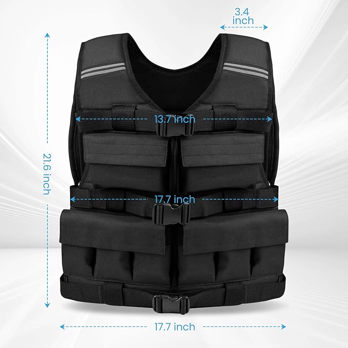 - Adjustable Weight Vest: The weight vest features an adjustable size buckle design, making the weighted vest more inclusive and suitable for a variety of body types, allowing the weight vest to fit more closely, increasing comfort and effectiveness during exercise