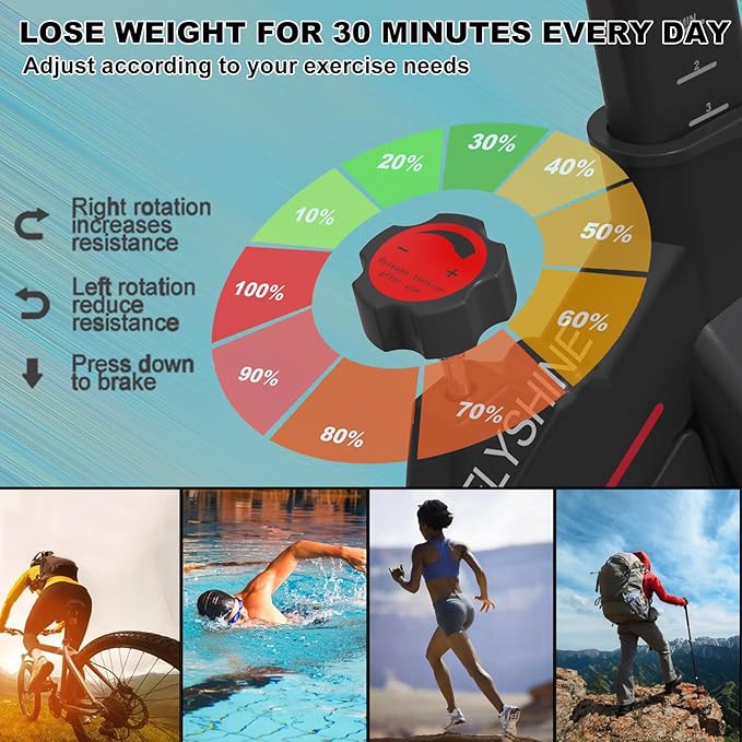 - đ´ăINFINITE ADJUSTABLE RESISTANCE SYSTEMă Customize your workout intensity with the bike's adjustable resistance levels to suit your fitness goals, allowing for a challenging or comfortable workout. This exercise bike provides an effective cardiovascular workout to improve heart health and burn calories.