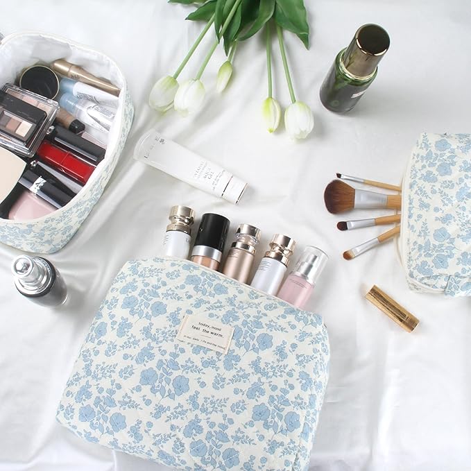 - 【TRAVEL POUCH】Whether you're storing skincare products, toiletries, makeup brushes, electronics and office items, this cotton quilted makeup bag is your perfect companion. It is a great choice for daily use and travel