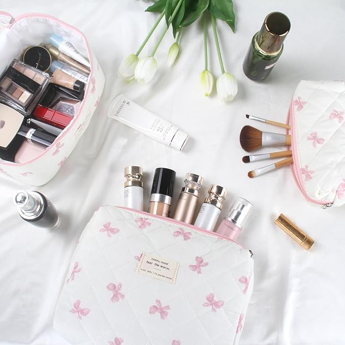 - 【GEOMETRIC AESTHETIC DESIGN】 This quilted bag features a chic, simple, and elegant pink bow pattern, comfortable to the touch. Suitable for your everyday makeup routine and special occasions, allowing you to showcase your personal style