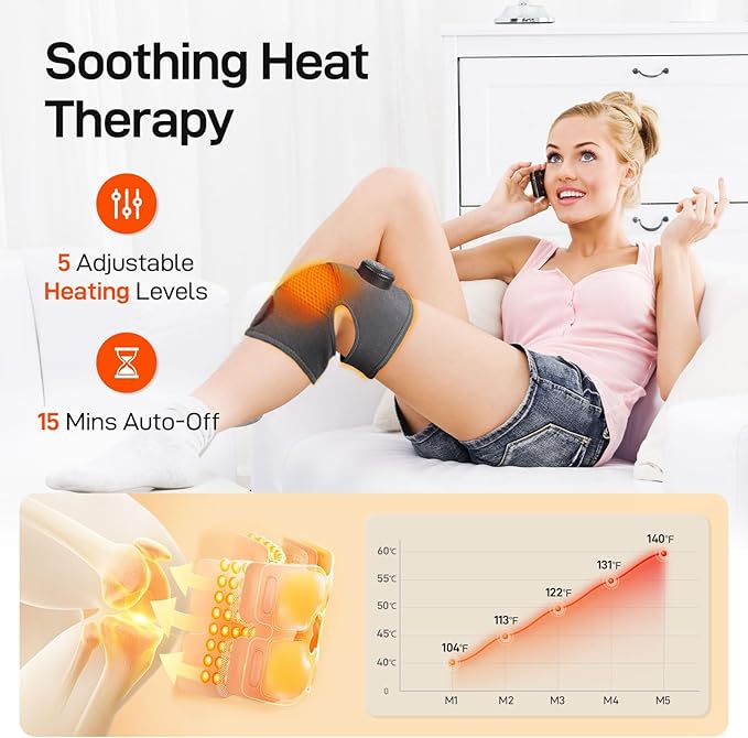 8 Modes & 20 Intensities Cordless Heated Knee Massager,FSA HSA Eligible,Heating Pad for Knee, Shoulder, Elbow Pain Relief,Heated Knee Brace for Arthritis,Perfect Holiday Gift for Men & Women
