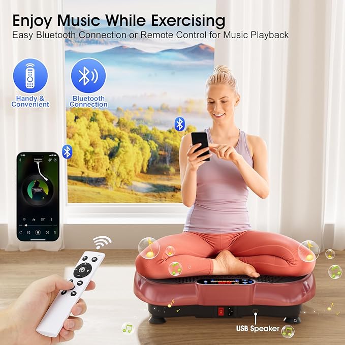 - ✅【Why Choose Anyrap Vibration Plate?】:High Power & Ultra-quiet motor; Can be used as BT speaker; Bigger size than traditional ones; LED display shows time, speed; Magnet health massage function;Compact & easy to carry and store;Anti-slip coating designed;Enhanced upgraded ergonomic design shell makes it can load capacity up to 330 lbs and ensure more durability and stability; Easy to operate with controller while exercising; Up to 6.6Ft Long power cord.
