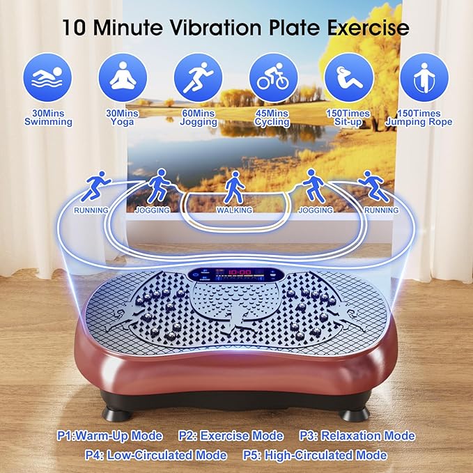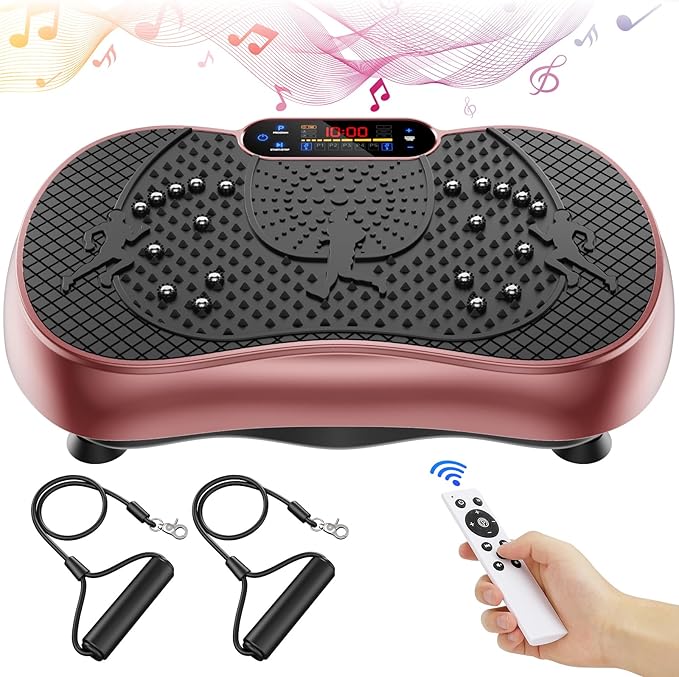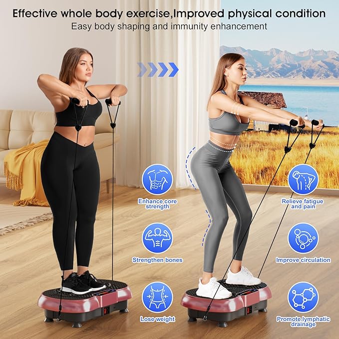 - ✅【Tailored features for different needs】: The vibration platform machine features 5 automatic modes, adjustable vibration speed (1 to 180), comes with 2 resistance training bands to work both the upper and lower body. You can combine these vibration routines with exercises such as squats, lunges, sit-ups, push-ups and yoga. 10-minute workout per day increases bone mineral density, allowing you to effortlessly achieve a perfect physique.