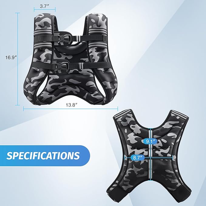 • ADJUSTABLE FEATURES: Adjustable elastic straps and reflective stripes help this vest go any place at any time. For circuit training, weightlifting, cardio, strength training, weight loss, and beyond, this vest will take your workout to the next level