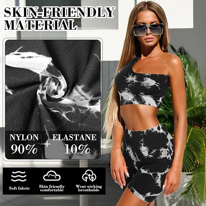 - Pilates Outfit Set: women 4 piece workout sets include 1pcs scoop neck sports bra, 1pcs one shoulder sport top, 1pcs ribbed shorts and 1pcs women leggings, stylish and practical garments designed to bring comfort and functionality to your workouts