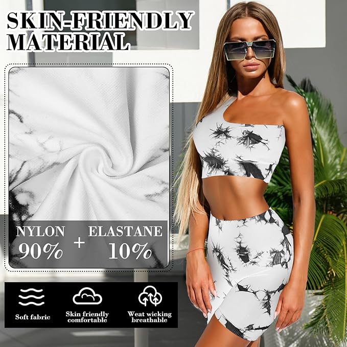 - Pilates Outfit Set: women 4 piece workout sets include 1pcs scoop neck sports bra, 1pcs one shoulder sport top, 1pcs ribbed shorts and 1pcs women leggings, stylish and practical garments designed to bring comfort and functionality to your workouts