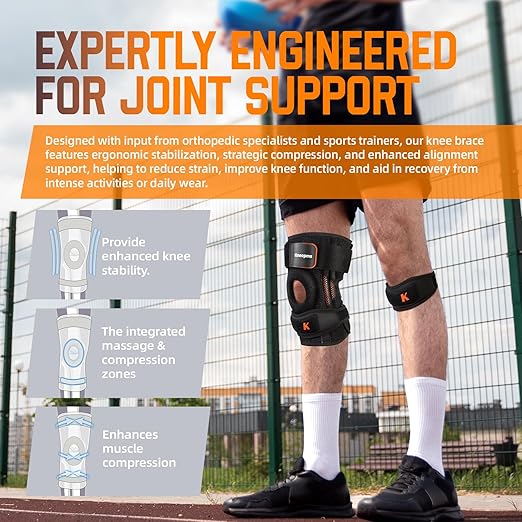 - 【REINFORCED STABILITY & UPGRADED COMFORT AND BREATHABILITY】Kneopms 2-in-1 knee brace built-in memory-level support springs on both sides provide enhanced knee stability. These springs deliver powerful rebound force, offering stronger support and reducing strain on vulnerable ligaments.Crafted with high-performance Spandex and Nylon, this Japan 5D functional composite fabric offers exceptional elasticity and breathability. It enhances muscle compression while ensuring a comfortable and secure fit, providing optimal support without restricting movement.The back of the knee (popliteal area) is designed with breathable mesh, preventing sweat buildup,allowing for extended wear without irritation.