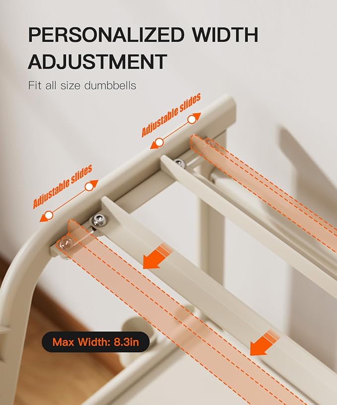 3-Tier Dumbbell Rack Stand Only - 700LB Heavy Duty Weight Storage Organizer with Thickened Steel Tube, Adjustable Weight Stand for Dumbbells, Barbells, Kettlebells, Black/Beige