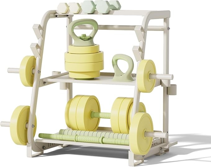 - 【Multi-Tier Free Weight Storage】Organize dumbbells, kettlebells, and gear effortlessly! This space-saving weight rack features three tiers for versatile storage. The adjustable top level fits various sizes and weights, while keeping your home gym tidy and essentials within reach.