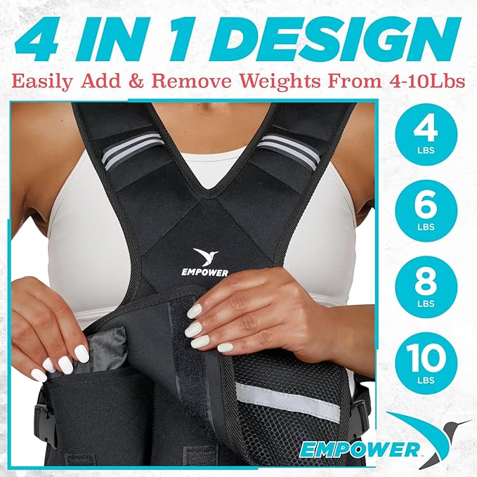 Empower Weighted Walking Vest for Women – Strengthen Muscles, Boost Bone Health, and Burn More Calories (fixed 8lbs, adjustable 4-10lbs or 10-16lbs)