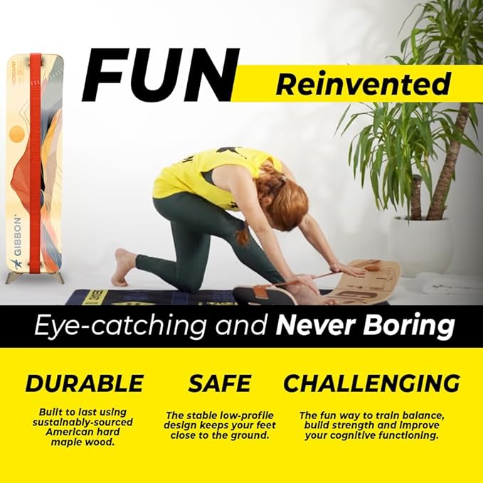 GIBBON GiBoard Balance Board for Adults & Kids - Slackline Workout Equipment Home Gym Training - Wooden Wobble Board Balance Trainer - Standing Desk Exercise - Yoga, Agility, Pilates, Core, Snowboard