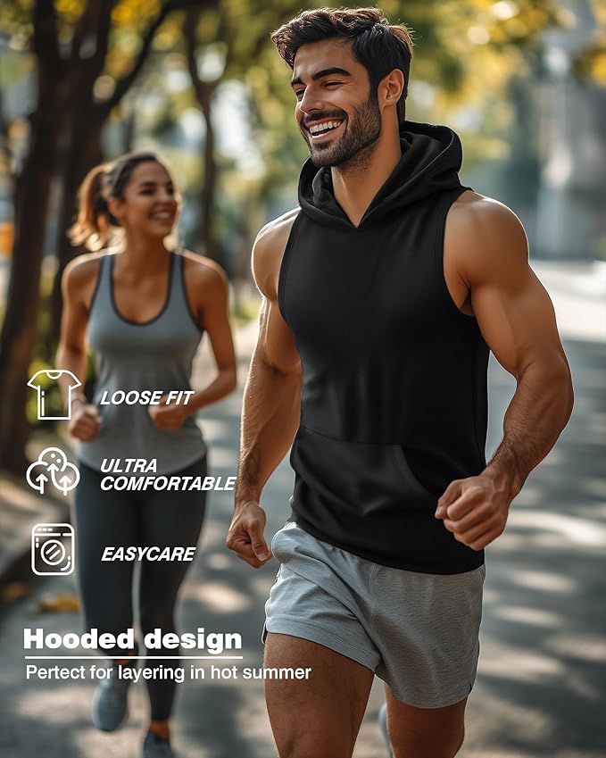 - Sleeveless and Hooded Design: the men's hooded tank tops feature sleeveless, hooded and kangaroo pocket design, accentuating your physique and muscles of arms while having a practical pocket in front can store your belongs