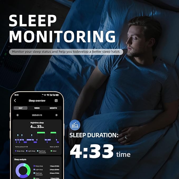 - 🏃♂️➡️【Smart Sleep Tracker】: Your favorite sleep tracker is now on your finger. This health ring for men and women can also automatically monitor your sleep. Monitor your sleep, wake-up time, sleep quality through charts. You can view daily, weekly and monthly sleep data in the luck ring app to help you better adjust your habits to improve sleep quality. The fitness ring is very comfortable and you won't even notice it's there when monitoring sleep.