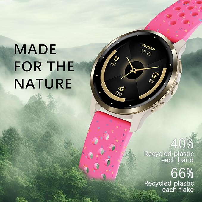22mm Colorful Sport Silicone Band Compatible With Garmin Vivoactive 4/Venu 3/Venu 2, Recycled Plastic Soft Sport Strap Replacement for Forerunner 265/745/255/255 Music Men Women