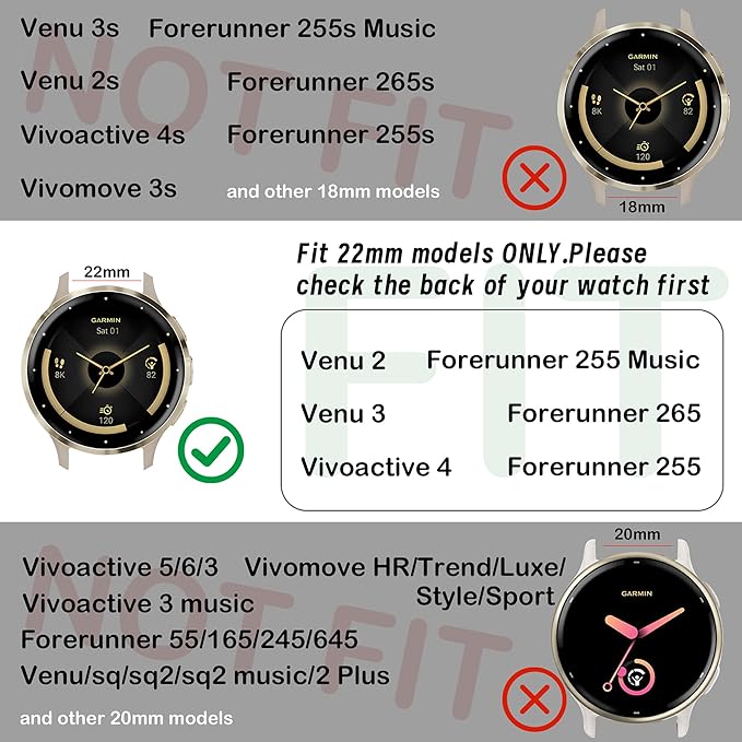 • 【Compatible Models】Laband 22mm colorful silicone band compatible with Garmin Vivoactive 4,Venu 2, Venu 3,Forerunner 265/745/255/255 Music,Samsung Galaxy Watch 3 45mm/Galaxy Watch 46mm,Gear S3 Frontier/Classic. Please check your watch model before purchasing.