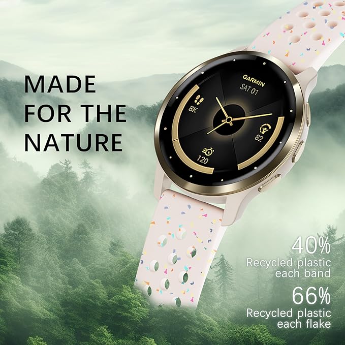 22mm Colorful Sport Silicone Band Compatible With Garmin Vivoactive 4/Venu 3/Venu 2, Recycled Plastic Soft Sport Strap Replacement for Forerunner 265/745/255/255 Music Men Women