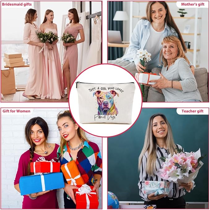 Pit Bull Gifts for Woman Makeup Bag Pitbull Lovers Cosmetic Bag Travel Organizer Bags Makeup Pouch, Christmas Birthday Friendship Animal Lovers Gifts for Women Girls Sisters