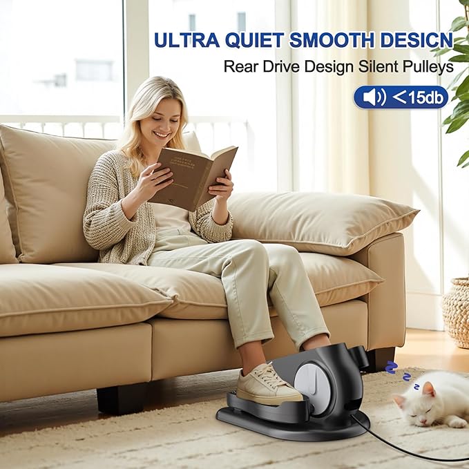 - 【SILENT OPERATION】Equipped with the latest silent system, this under-desk elliptical ensures a noiseless workout, even at a high speed. It allows you to exercise anytime and anywhere, without disturbing your co-workers or family members