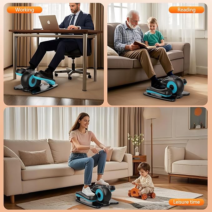 - 【Low-Impact Exercise for Everyone】 The FITKS360 under-desk elliptical is designed for seniors, office workers, and those recovering from leg injuries. It provides a gentle, low-impact workout that helps burn calories, boost circulation, and improve muscle strength, all while aiding in leg recovery and flexibility.