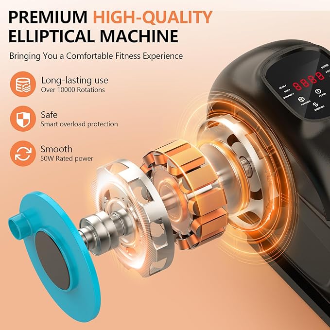 - 【Whisper-Quiet & Smooth Operation】 Built with advanced noise-reduction technology, this elliptical operates quietly—even at high speeds—so you can work out without disturbing others, whether at home or in the office.