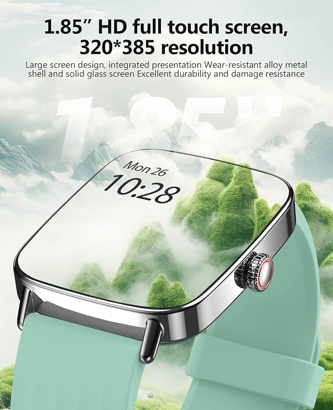 2025 Smart Watches for Men Women, 1.85" AI Voice Smartwatch, 24/7 Heart Rate Monitor, Stress/SpO2/Sleep Tracker, IP68 Waterproof, Weather, 100+ Sports Fitness Tracker for Android iOS Green