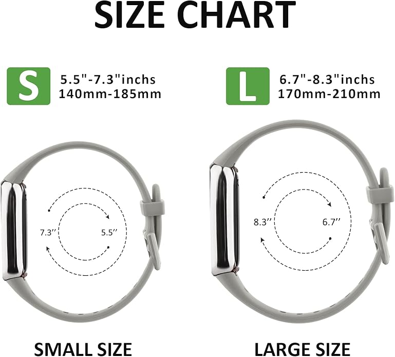 • Two Sizes Choices : Small Size for 5.5" - 7.3" (140 mm-185mm) wrist, Large Size for 6.7" -8.3" (170mm-210mm) wrist. Various bright colors can personalize your Fitbit Luxe to fit your mood and outfit in daily life, elevates your style for every occasion.