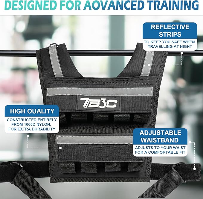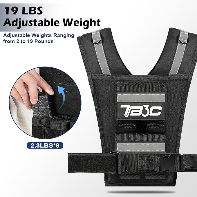 - Adjustable Weight: The TB3C adjustable weight vest is available in three weights, each with removable weight blocks,19lbs (8 weights), 30lbs (14 weights) and 40lbs (18 weights), allowing you to adjust the weight to suit your level of training and goals.
