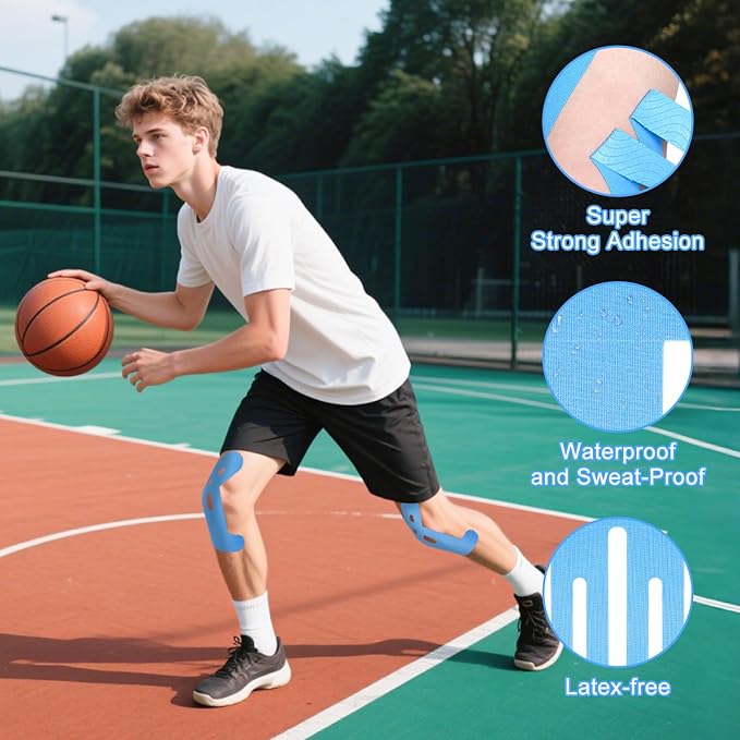 - Strong and durable: Knee tapes for knee pain relief pre cut is made of breathable cotton base and medical acrylic adhesive layer. The waterproof coating of muscle tape kinesiology tape can resist the influence of sweat and maintain strong adhesion, suitable for all kinds of indoor and outdoor sports environments