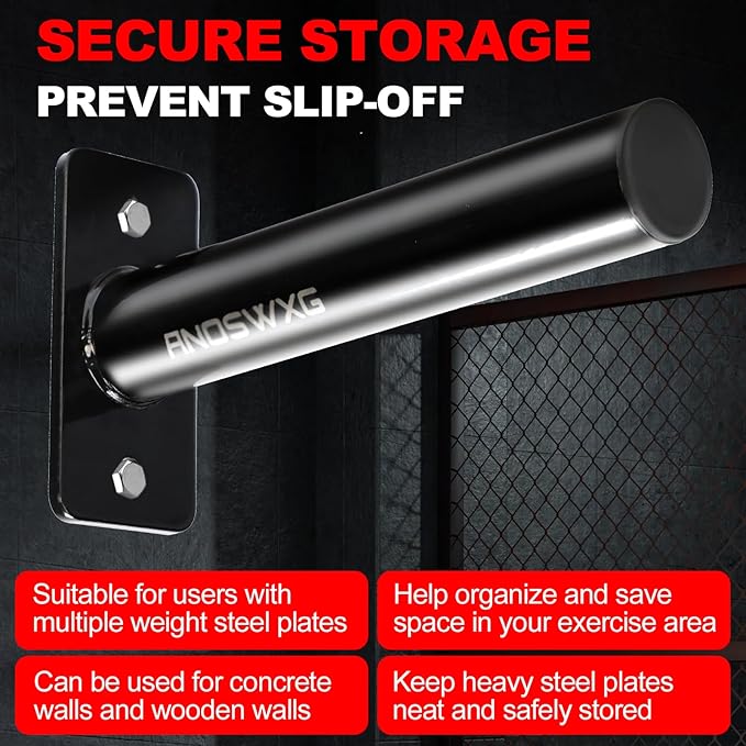 • Premium Weight Plate Storage Rack - Wall Mountable Bumper Plate Holder for Home Gym & Strength Training. Space-Saving Wall Mount Design: Ideal for organizing your weight plates and saving floor space. Heavy Duty & Stable: Strong steel pipe construction with an impressive weight capacity. Perfect Fit for 2" Plates: Designed specifically for 2-inch Olympic weight plates. Protective Foam Layer: Prevents plate wear and tear while ensuring a quiet workout environment. Versatile Installation: Suitable for both wood and concrete walls.