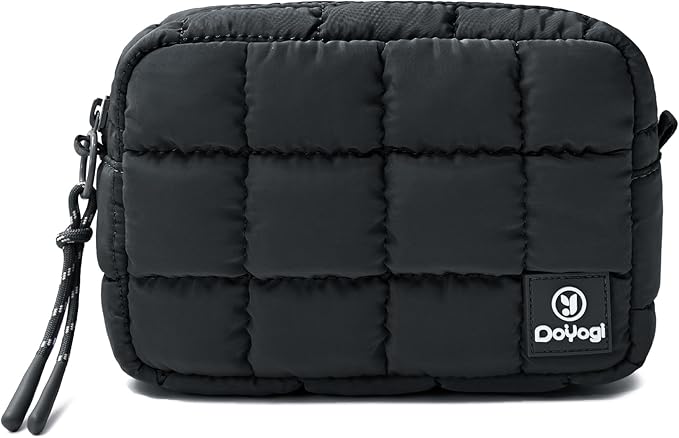 Quilted Cosmetic Bag, Puffer Makeup Bags, Crossbody Purses for women,Cute Travel Toiletry Bag for Women (Charcoal)