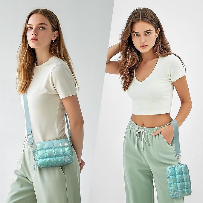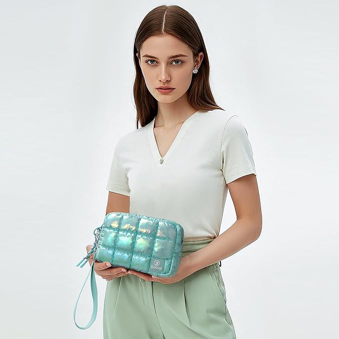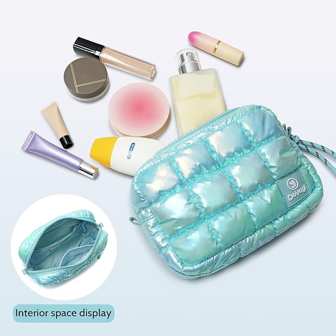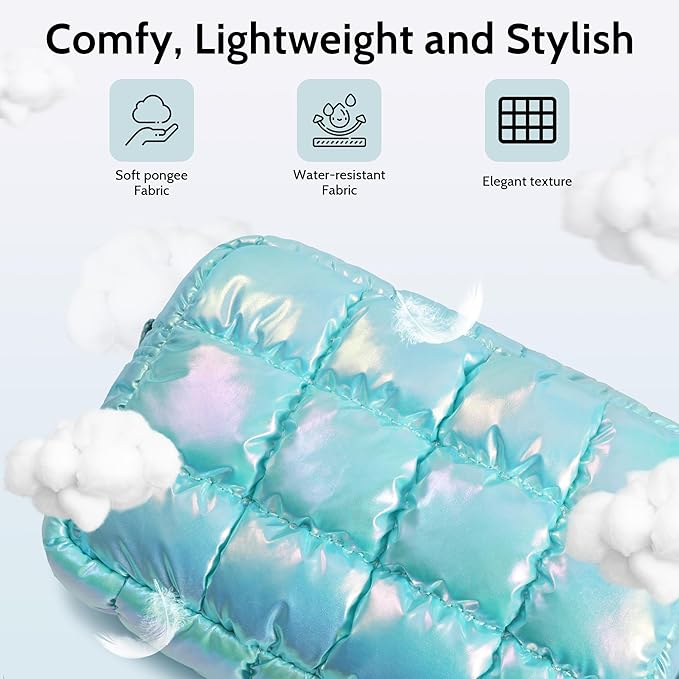 Quilted Cosmetic Bag, Puffer Makeup Bags, Crossbody Purses for women,Cute Travel Toiletry Bag for Women (Dazzling Ice Blue)