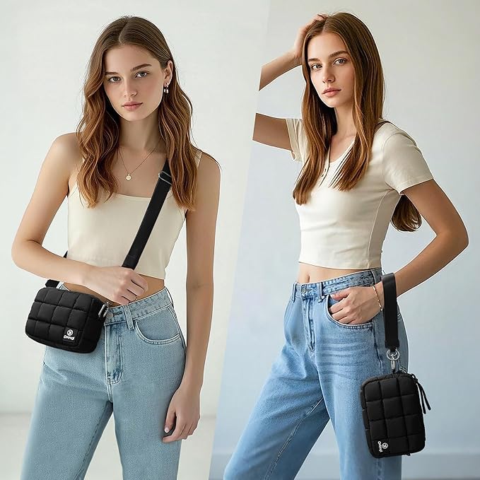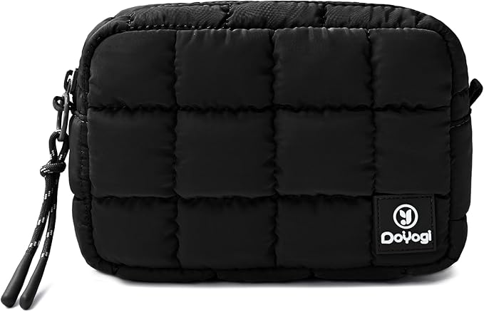 Quilted Cosmetic Bag, Puffer Makeup Bags, Crossbody Purses for women,Cute Travel Toiletry Bag for Women (Black)