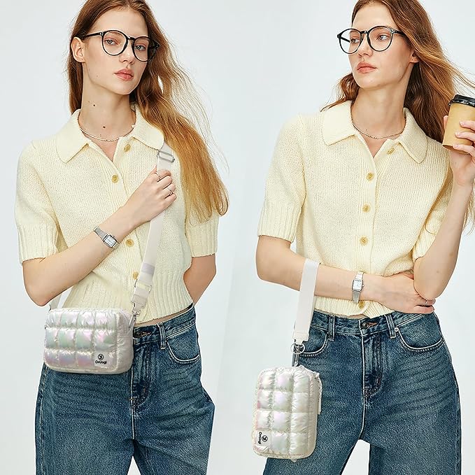 Quilted Cosmetic Bag, Puffer Makeup Bags, Crossbody Purses for women,Cute Travel Toiletry Bag for Women (Dazzling White)