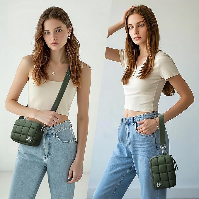 Quilted Cosmetic Bag, Puffer Makeup Bags, Crossbody Purses for women,Cute Travel Toiletry Bag for Women (Green)