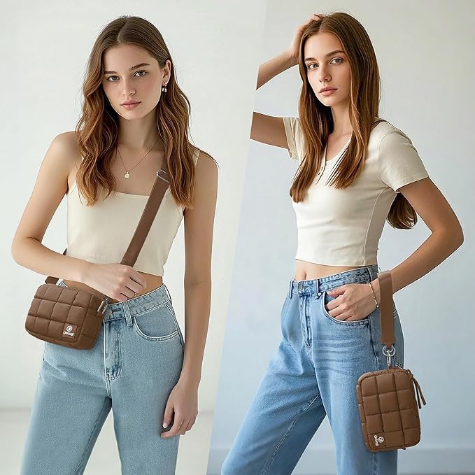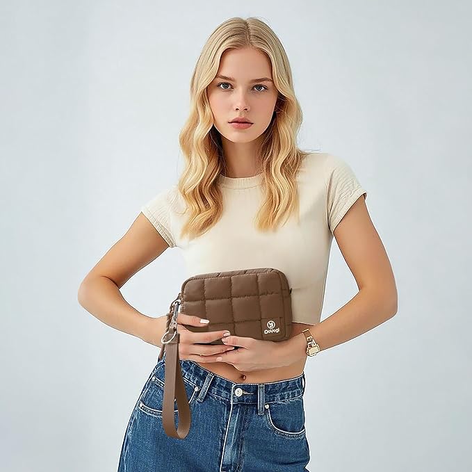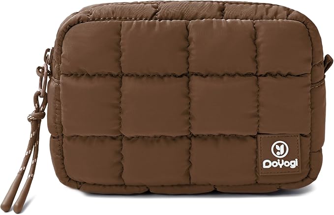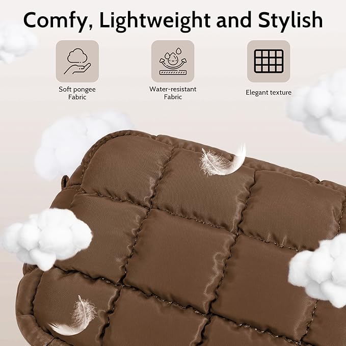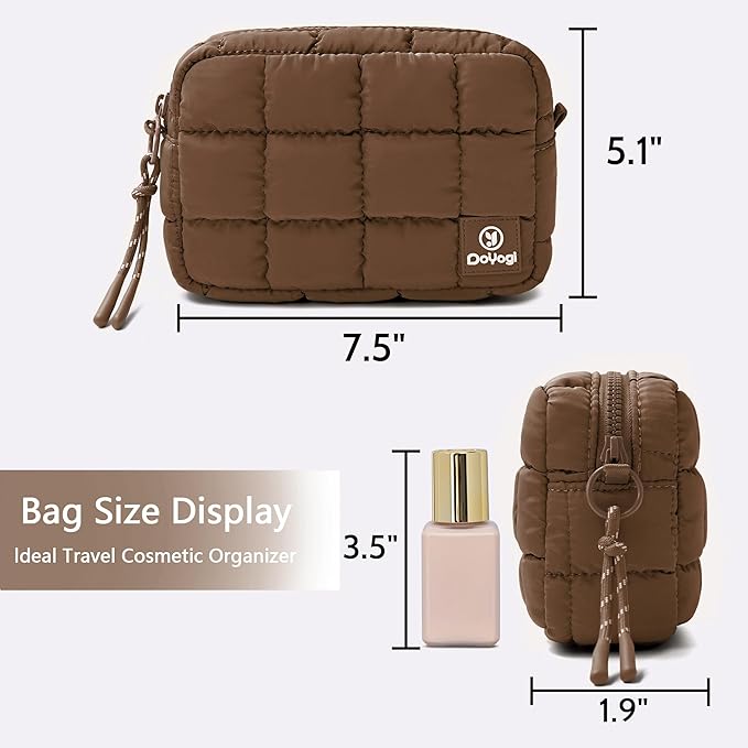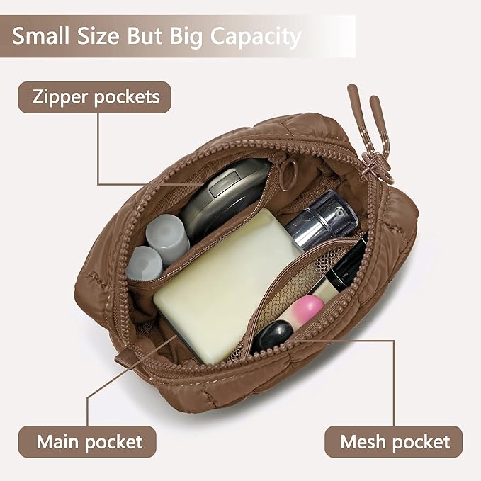 Quilted Cosmetic Bag, Puffer Makeup Bags, Crossbody Purses for women,Cute Travel Toiletry Bag for Women (Caramel)