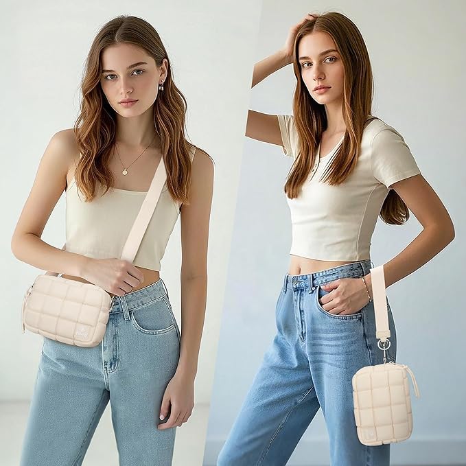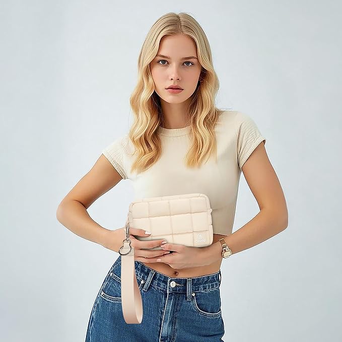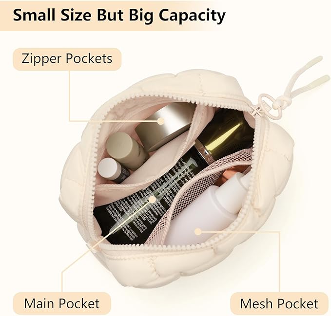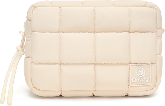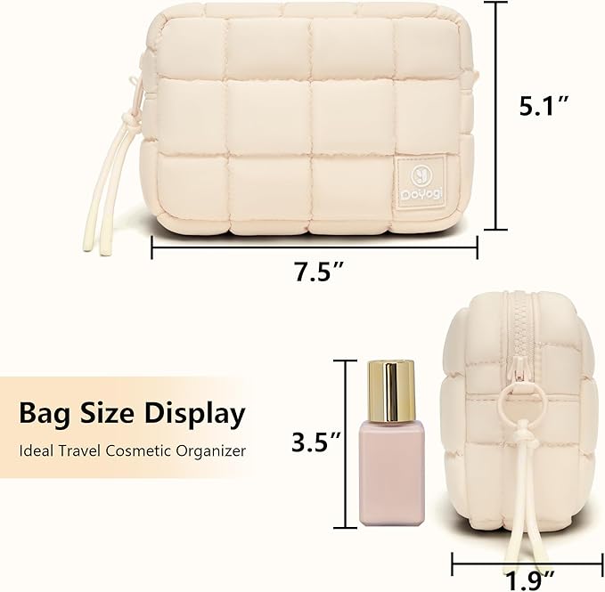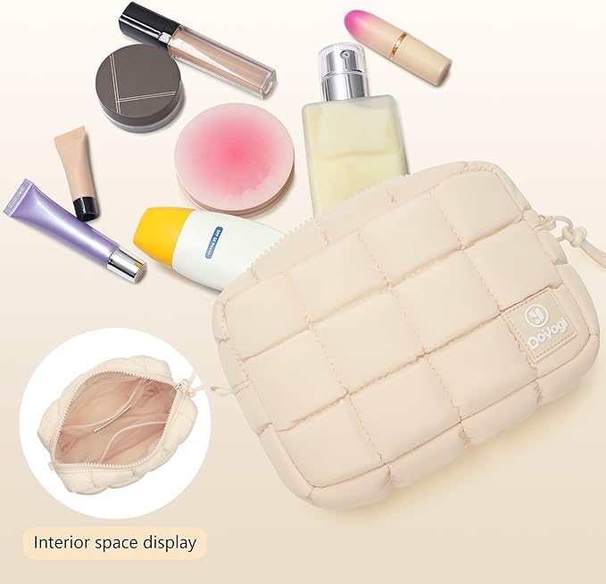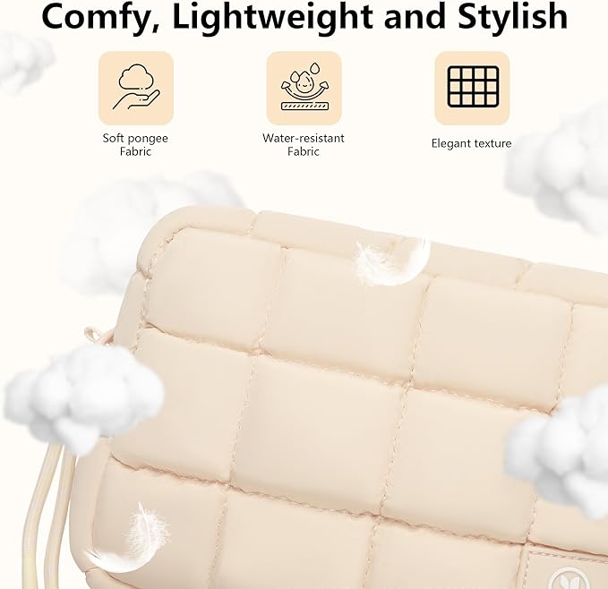 Quilted Cosmetic Bag, Puffer Makeup Bags, Crossbody Purses for women,Cute Travel Toiletry Bag for Women (Beige)