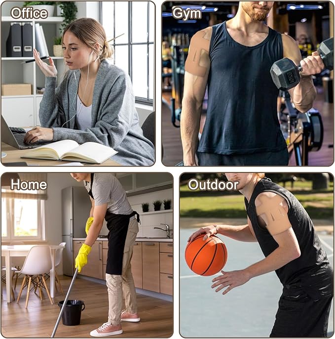 - Unique pre-cut design: Experience the convenience of our pre-cut kinesiology tape for shoulder that are carefully crafted to fit the contours of your shoulders perfectly. Whether you're lifting weights, running or playing sports, this customized shoulder tape ensures optimal support and protection during your workout