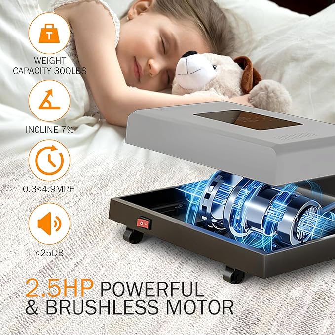 - Quiet Yet Powerful 2.5HP Motor: Enjoy a quiet workout with our 2.5HP brushless motor, providing strong performance for various speeds and inclines. Ideal for early morning or late-night exercise without disturbing others. Perfect for a walking pad treadmill under desk, a compact treadmill with incline, or an under desk treadmill quiet operation.