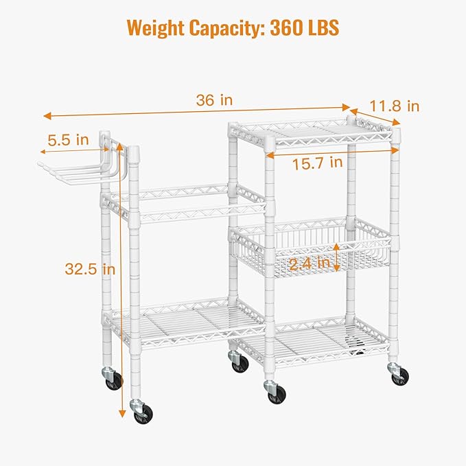 - Size & Weight Capacity: 36”W x 11.8”D x 32.5”H, the whole rack can hold 360 pounds. The yoga mat storage rack comes with 3 shelves, 1 wire basket, and 8 hooks, which can build an enough space for your workout equipment
